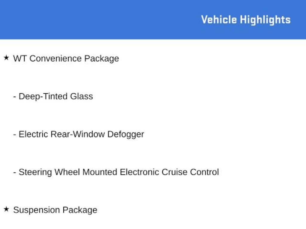 Additionally, the Silverado 3500HD Work Truck includes a steering wheel-mounted electronic cruise control for ease of driving, a suspension package for improved ride quality, and the WT Convenience Package for added comfort and convenience.