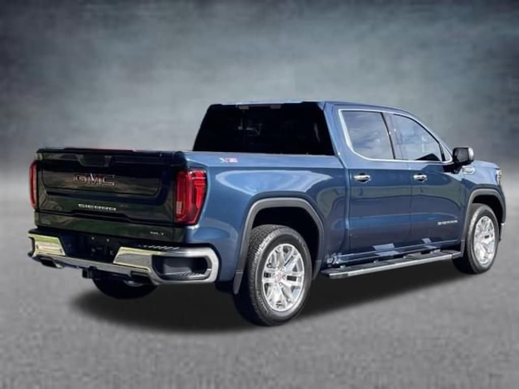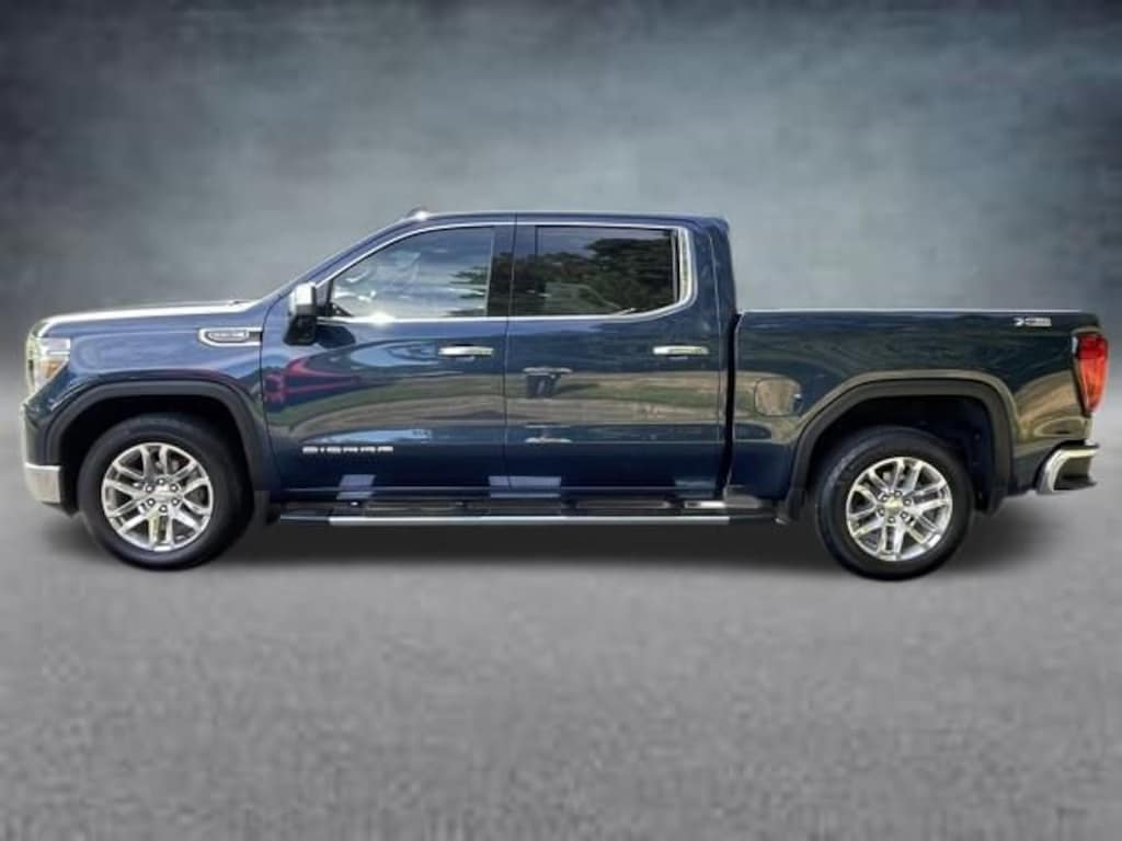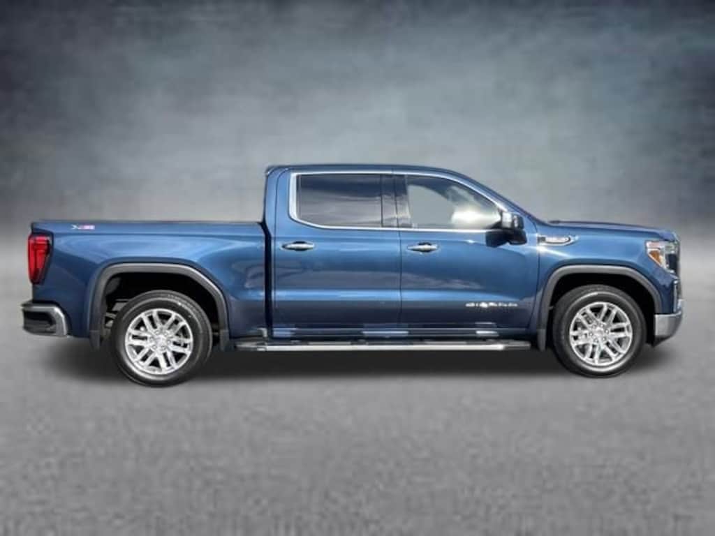 The 2019 GMC Sierra 1500 SLT in Pacific Blue Metallic is a full-size pickup that combines rugged capability with premium comfort and advanced technology. Powered by a 5.3L EcoTec3 V8 paired with an 8-speed automatic transmission and four-wheel drive, it delivers strong performance on the road and off, complemented by the X31 Off-Road Package and heavy-duty rear locking differential for confident handling in challenging conditions. The dual exhaust with premium tips and chrome accents, including assist steps and grille, give the Sierra a commanding presence.