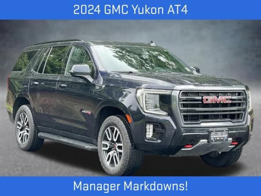 The 2024 GMC Yukon AT4 in Midnight Blue Metallic combines rugged capability with premium features, making it an excellent choice for those seeking a versatile and refined full-size SUV. Powered by the EcoTec3 5.3L V8 engine, paired with a 10-speed automatic transmission and 4WD, the Yukon AT4 offers impressive power and control, whether on highways or rugged terrain.