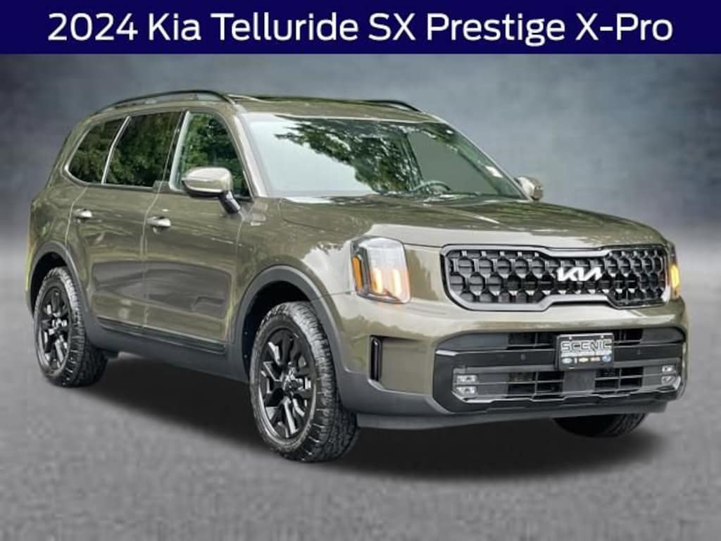 The 2024 Kia Telluride SX-Prestige X-Pro in Dark Moss is a full-size SUV designed for those who want luxury, advanced technology, and rugged capability in one package. Powered by a 3.8L V6 DOHC engine with an 8-speed automatic transmission and AWD, it delivers strong performance and confidence whether on the highway or tackling more demanding terrain. The X-Pro trim enhances off-road readiness, making it as capable on trails as it is refined in the city.