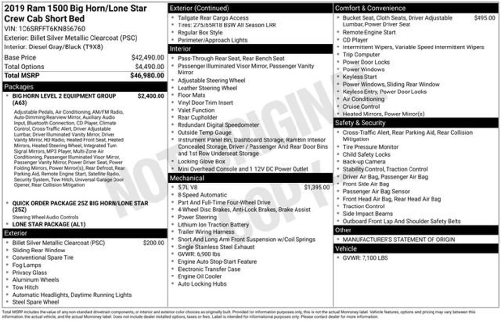 Tax, title, license and dealer fees (unless itemized above) are extra. Not available with special finance or lease offers. Price does not include dealer installed accessories, upfits, or other dealer add-ons. Please contact dealer for details. We strive to ensure all pricing and information contained in this website is accurate. Dealer reserves the right to refuse any sale due to pricing errors and will not be held responsible for any errors resulting from typos, inaccurate detail information or technical mistakes. We reserve the right to correct any pricing errors at any time.MPG estimates on this website are EPA estimates; your actual mileage may vary. For used vehicles, MPG estimates are EPA estimates for the vehicle when it was new. The EPA periodically modifies its MPG calculation methodology; all MPG estimates are based on the methodology in effect when the vehicles were new (please see the 'Fuel Economy' portion of the EPA's website for details, including a MPG recalculation tool).